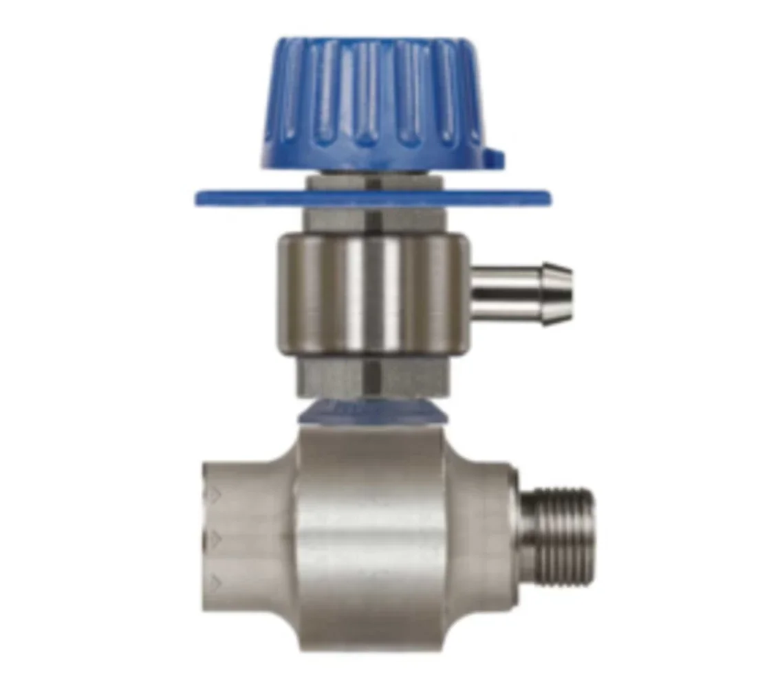 Injector ST-160 voor chemische en schuimtoepassingen. De chemische dosering wordt geregeld doormiddel van de blauwe draaiknop